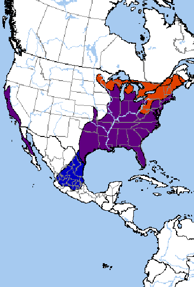 Nest a large bowl of sticks, dried leaves, strips of bark, Spanish moss, lichens, and live conifer twigs. Lined with fine bark, mosses, lichens, and conifer twigs. Placed in main crotch of tree, often near water.