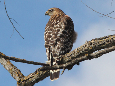 Although the American Crow often mobs the Red-shouldered Hawk, sometimes the relationship is not so one-sided. They may chase each other and try to steal food from each other. They may also both attack a Great Horned Owl and join forces to chase the owl out of the hawk's territory.