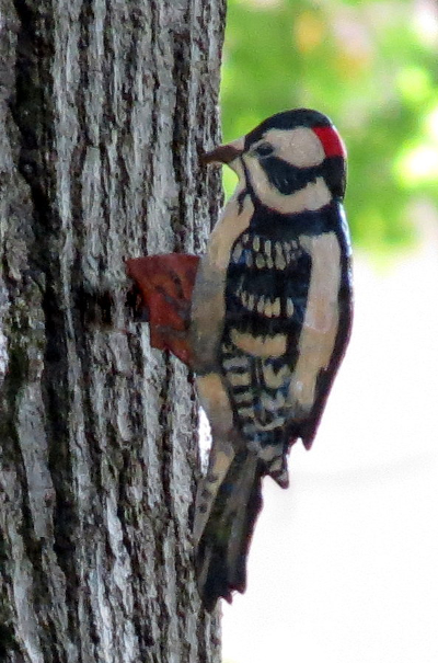 Woodpeckers don’t sing songs, but they drum loudly against pieces of wood or metal to achieve the same effect. People sometimes think this drumming is part of the birds’ feeding habits, but it isn’t. In fact, feeding birds make surprisingly little noise even when they’re digging vigorously into wood.