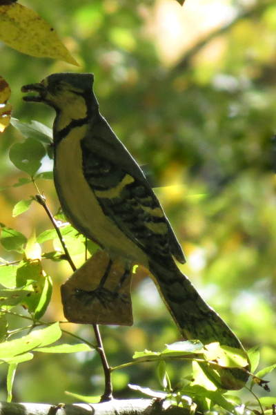 the Blue Jay replica is on that limb about a meter out from the trunk.