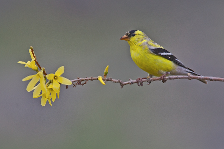 The brightening yellow of male goldfinches each spring is one welcome mark of approaching warm months.