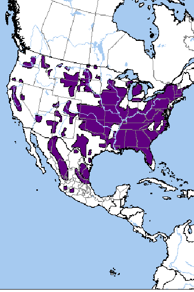 Found in hardwood forests with scattered openings, swamps, mesquite grassland, ponderosa pine, and chaparral.